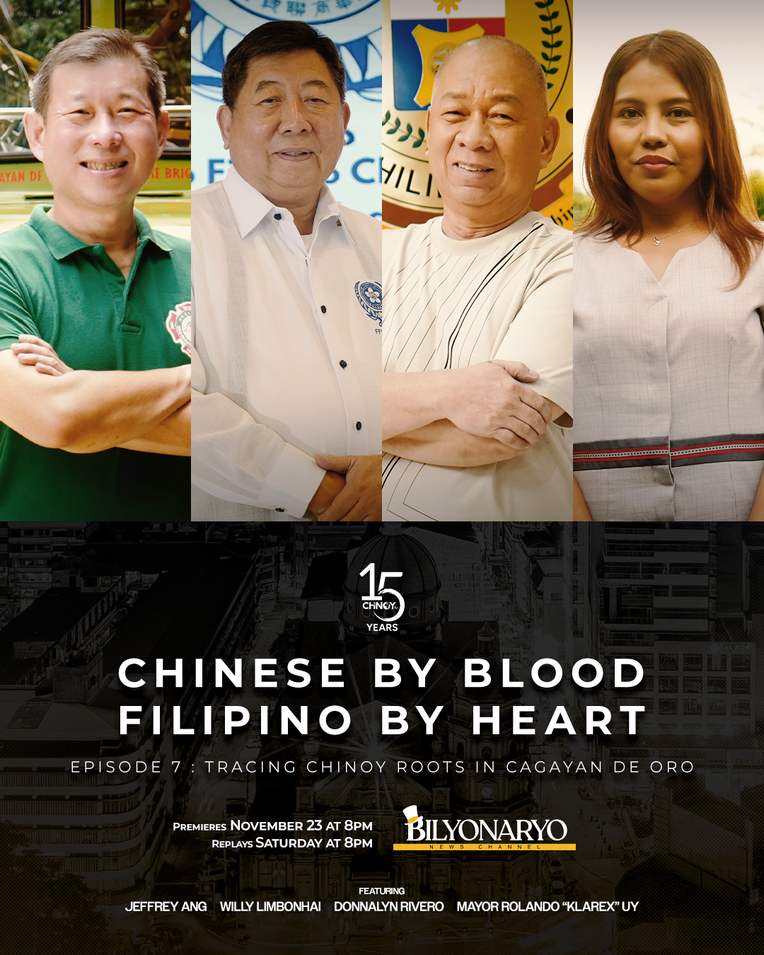 Catch Chinese by Blood, Filipino by Heart Season 6 Episode 7: Tracing Chinoy Roots in Cagayan de Oro this Sunday, November 23, 2025, at 8 PM on Bilyonaryo News Channel (Free TV Channel 31, Cignal Channel 24, Converge Channel 74, SkyCable Channel 33). Replays air Saturdays at 8 PM, and full episodes are also available on CHiNOY TV’s Facebook and YouTube @ChinoyTVOnline.